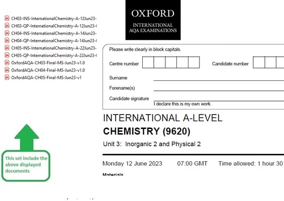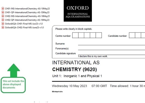 OXFORD AQA AS LEVEL CHEMISTRY 2023 JANUARY PAPERS WITH MARKSCHEMES