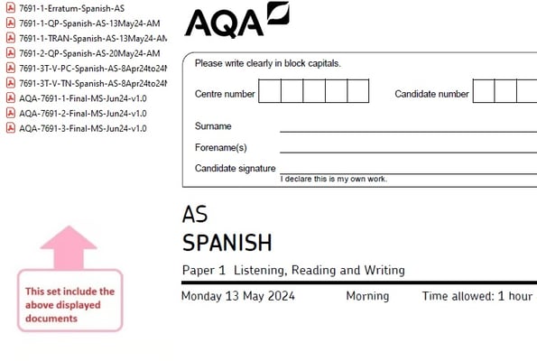 AQA AS LEVEL SPANISH 2024 PAPERS WITH MARKSCHEMES