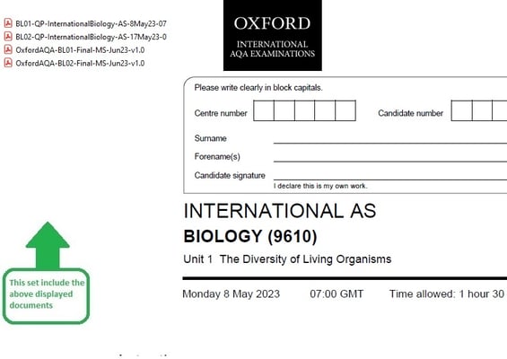 OXFORD AQA AS LEVEL BIOLOGY 2023 JUNE PAPERS WITH MARKING SCHEME