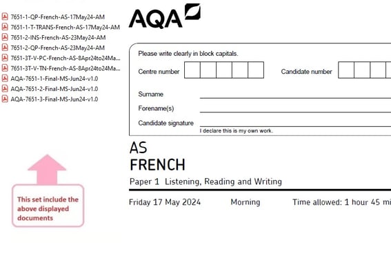 AQA AS LEVEL FRENCH 2024 PAPERS WITH MARKSCHEMES