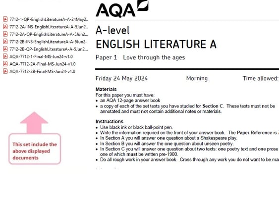 AQA A LEVEL ENGLISH LITERATURE A 2024 PAPERS WITH MARKSCHEMES
