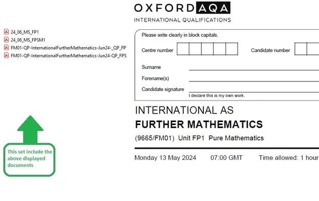 OXFORD AQA AS LEVEL FURTHER MATHS 2024 JUNE PAPERS WITH MARKSCHEMES