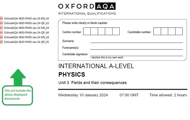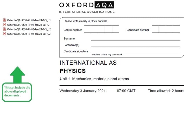 OXFORD AQA AS LEVEL PHYSICS 2024 JANUARY PAPERS WITH MARKSCHEMES