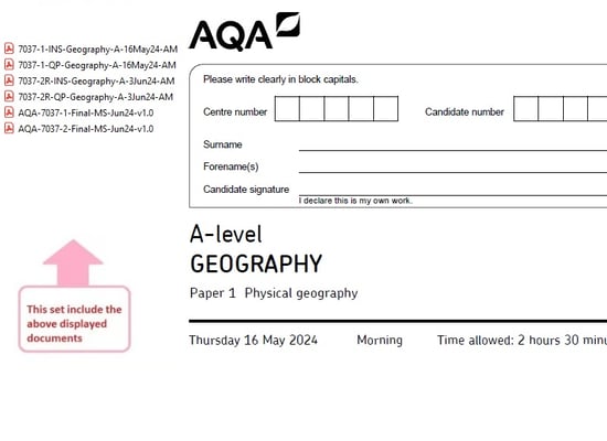 AQA A LEVEL GEOGRAPHY 2024 PAPERS WITH MARKSCHEMES