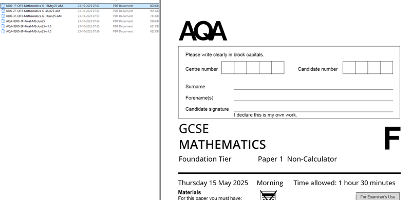 AQA GCSE MATHS (Foundation) 2025 JUNE PAPERS WITH MARKING SCHEME