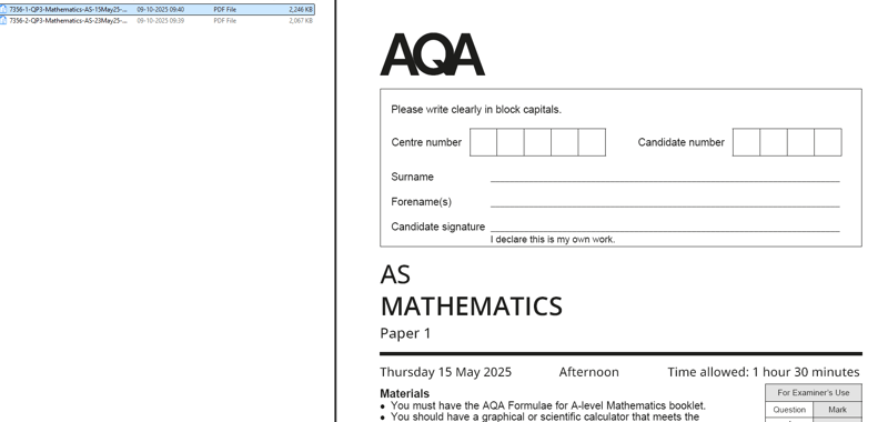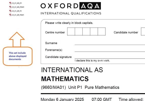 OXFORD AQA AS LEVEL MATHS 2025 JANUARY PAPERS WITH MARKSCHEMES