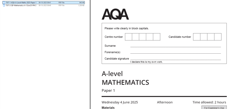 OXFORD AQA A LEVEL MATHEMATICS 2025 JUNE PAPERS WITH MARKING SCHEME