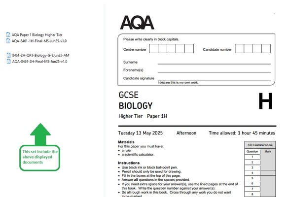 AQA GCSE BIOLOGY HIGHER 2025 JUNE QUESTION PAPERS WITH SCHEME
