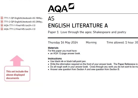 AQA AS LEVEL ENGLISH LITERATURE A 2024 PAPERS WITH MARKSCHEMES