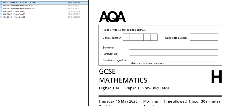 AQA GCSE MATHS (Higher) 2025 JUNE PAPERS WITH MARKING SCHEME