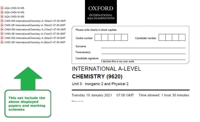 OXFORD AQA A LEVEL CHEMISTRY 2021 JANUARY PAPERS WITH MARKSCHEMES