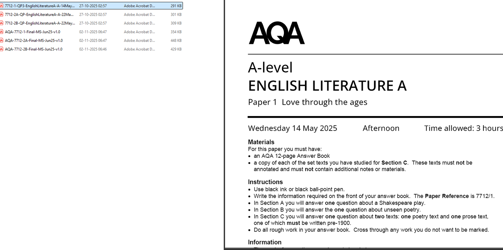 AQA ENGLISH LITERATURE 2025 JUNE QUESTION PAPERS WITH MARKING SCHEME