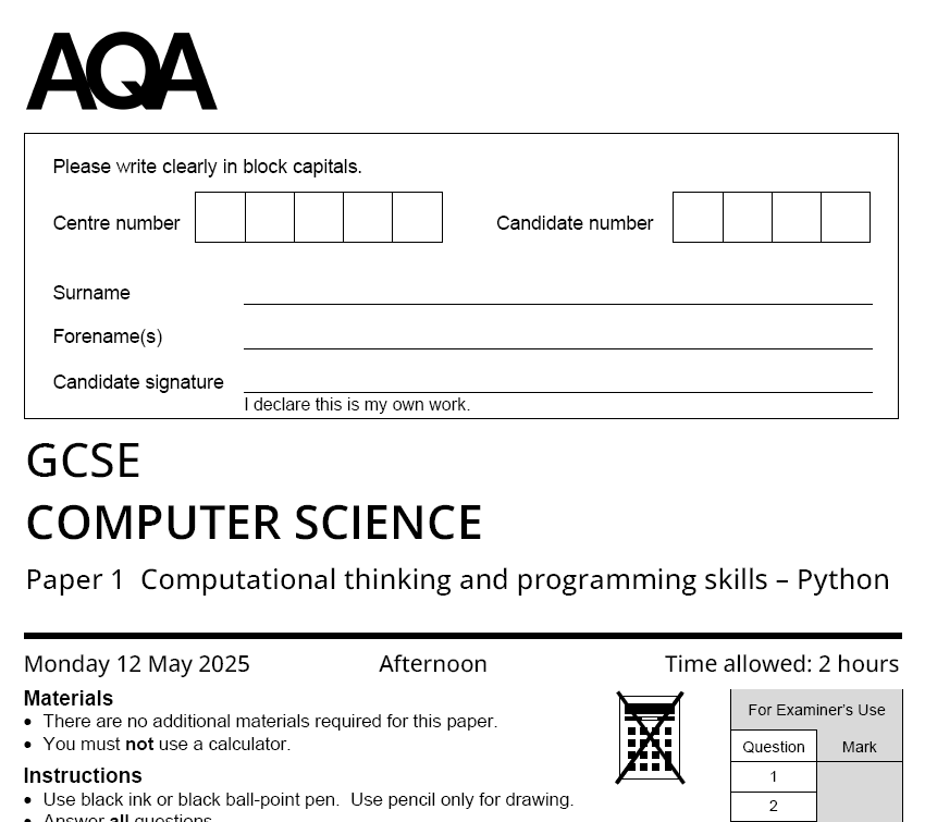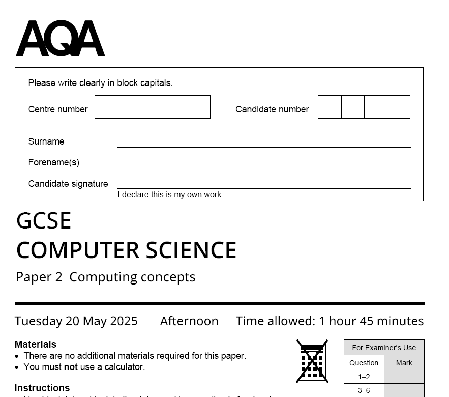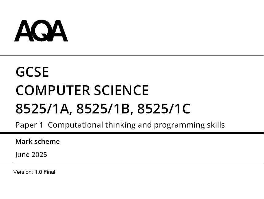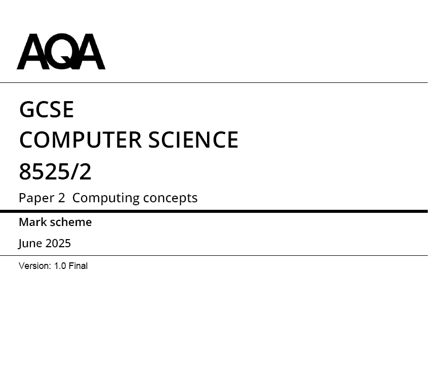 AQA GCSE COMPUTER SCIENCE 2025 JUNE QUESTION PAPERS WITH SCHEME